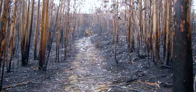 ¿Qué din os rumorosos..? cantaba Pondal. Silencio y desolación. El monte calla. Un luto de ceniza y humo negro ha hecho del bosque un inmenso catafalco.