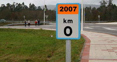 El pasado día 8, la panda de Los Lunes al Sol inició su andadura en este año de 2007. Esta señal del Km. 0 en una de nuestras carreteras simboliza el punto de partida del recorrido que, con toda la ilusión de los que amamos el campo, el monte, los ríos y el mar, hemos de hacer por los senderos que los cruzan y bordean. El próximo Sábado inciaremos también las salidas de la Caminata Sabatina, abierta a todos los aficionados a caminar.