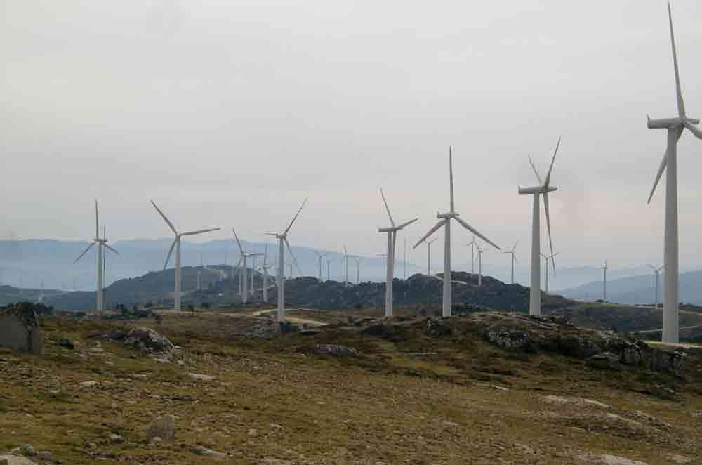 Salida y llegada. Un bosque de «molinos» cubre la sierra.