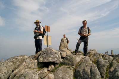 Posando en A Pedra do Acordo. Foto de familia con los del Veterum y Dietmar al fondo, con su acordeón.