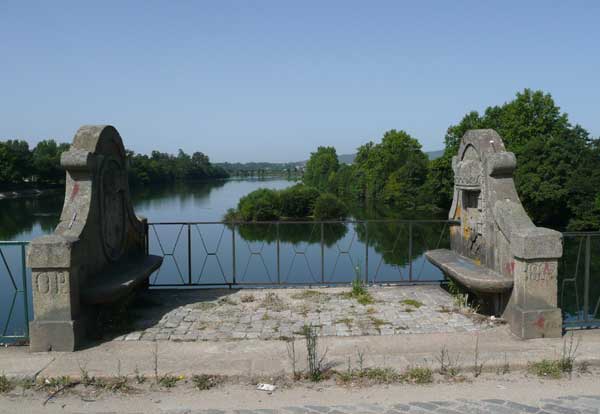 Vista desde el puente sobre el río Lima, en la villa de Prado. Hay fiesta en Santiago de Francelos. El paragüas, pensado para la luvia, sirve hoy para protegerse del sol implacable.