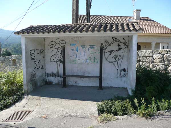 Lo bueno es que bajando desde el petroglifo por un tramo del GR-53 ya citado, a unos 200 m., se puede tomar un sendero a nuestra derecha que nos lleva a través de una hermosísima fraga que, a lo largo de unos 4 km. , nos envuelve en el embrujo de su calma yde su exhuberante frondosidad. La atraviesa un juguetón riachuelo que se precipita sobre sus piedras musgosas en alegres cascadas. Añosos carballos, amieiros, ruscos y otras especies decoran este increíble paraje. Poco antes de llegar a Chandebrito se hallan las ruinas de unos muiños, que el paso del tiempo ha cubierto de musgo y que recuerdan viejos tiempos de intensa actividad en estos parajes en los que aún se pueden apreciar las huellas de los carros del país en las piedras de las centenarias corredoiras.