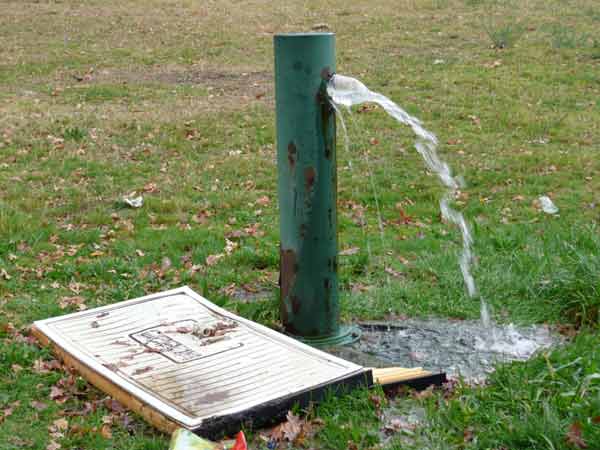 Javier sacia su sed en la fuente de Natoal, situada en un estratégico cruce. A su lado, el contraste de otra fuente en la Carballeira de San Xusto, modelo de chapuza y de mal gusto.