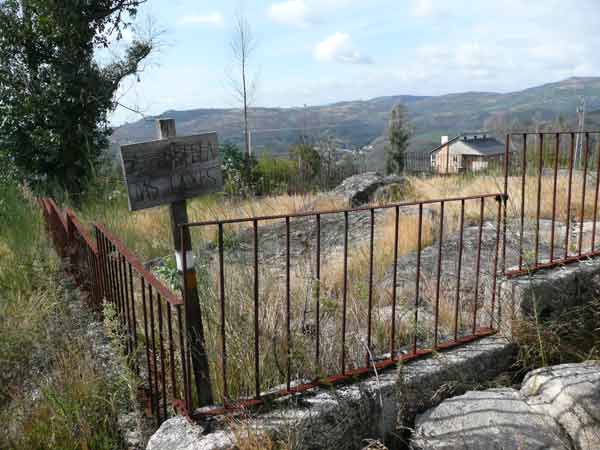De la Vereda vella tan sólo queda este trecho de la antigua calzada. El resto ha sido cubierto de hormigón. A Portela das laxes fue en su momento un cuidado recinto que albergaba estas rocas con sus petroglifos. Ahora es una muestra más del abandono en que están muchos de esos monumentos prehistóricos.