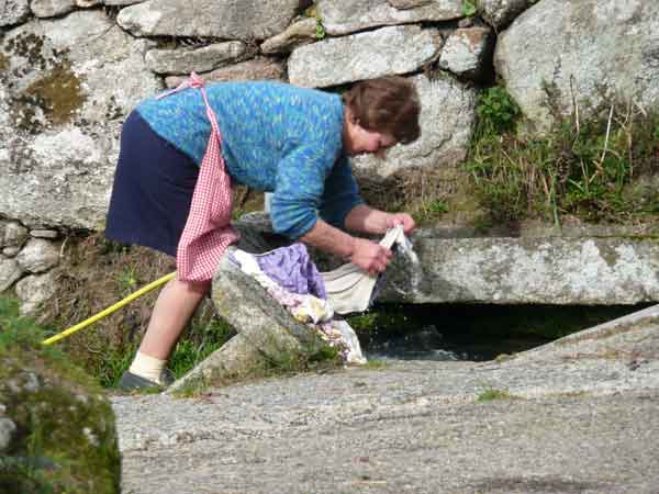El Puente de San Antón en Cerdedo. La hoy insólita escena de la lavandera a la salida del pueblo era muy corriente hace unas cuantas décadas.