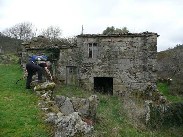 En Carballas, el punto más elevado del recorrido, frío e inhóspito, hay unas cuantas casas como ésta. Bajando hacia el río Almofrey, en el lugar de Arufe, algunos de los nuestros curiosean en su interior.
