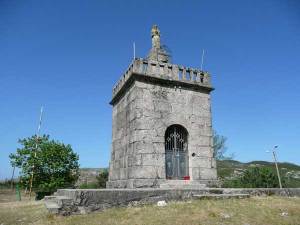 En los viejos caminos abundan estos cruceiros. A la derecha el monumento de Cristorei.