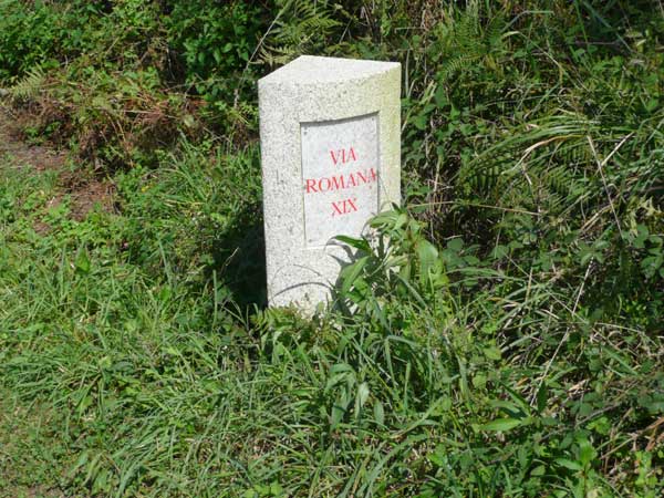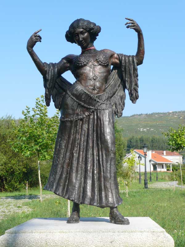 Un hito de la Vía Romana XIX procedente de Braga. La efigie de La Bella Otero, adorna el parque municipal de Valga.