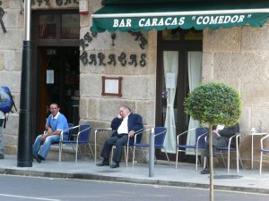 Después de la comida en el Caracas este paisano se regala una dulce siesta quizá inspirada por un rico blanco del Ribeiro cuyos racimos están ya pendientes de la inmediata vendimia.