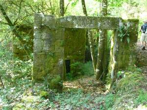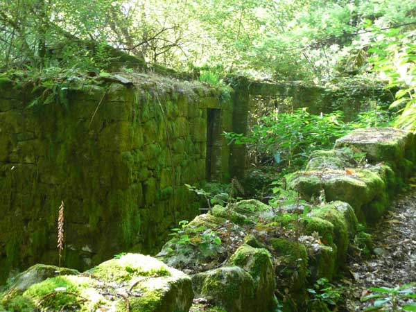 El recorrido está muy bien señalizado por lo que no hay posibilidad de perderse. Para un lunes como éste, soleado y caluroso, es la ruta ideal ya que en su mayoría discurre por parajes umbríos y frescos, ofreciendo al caminante sitios de gran interés y belleza. A unos cientos de metros del punto de inicio nos encontramos con la aldea abandonada de Viñoá de cuyas casas, algunas de cierto empaque, solamente quedan esqueléticos paramentos de piedra en cuyo interior han crecido árboles frondosos que dan idea de los años que han pasado desde que sus moradores las dejaron. Las fincas y huertas que rodeaban la aldea han sido presa de la maleza siendo este sendero su única vía de acceso, por lo que resulta difícil imaginar que en este sitio hubiese en otro tiempo la vida propia de una población rural.