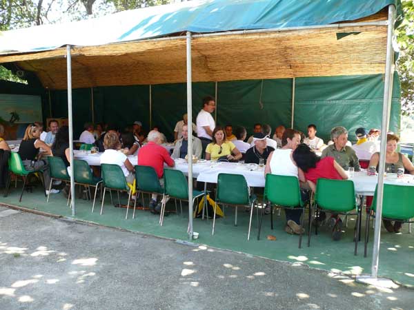 Ya de regreso, seguimos por el circular de Priegue dejando a nuetra izquierda la iglesia de San Mamede que es el inicio de esta ruta de nombre PRG 60 lamentablemente descatalogada por la Federación Gallega de Montañismo por falta de mantenimiento. Ahora ya es una paseo por las rúas Penedo, Rouxo, Condomínguez y Comesaña para, por el camiño de Cea, alcanzar la carretera y llegar al punto de salida donde nos espera un estupendo xantar amenizado con un grupo de gaitas a cuyo son hubo baile, alegría y candondeo.