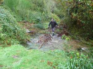 Para vadear este paso hubo que echar grandes piedras donde posar los pies y una rama con cuya ayuda pudimos atravesarlo sin descalzarnos, como se muestra en estas imágenes.