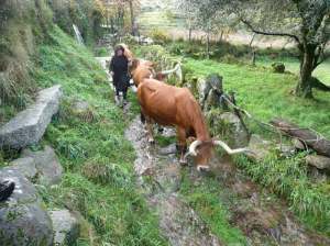 Otro de los riesgos en días cómo estos, con los caminos de piedra inundados, es el de resbalar, cosa que a nosotros, afortunadamente, no nos pasó. Pero la excepcional hermosura de estos parajes compensa el esfuerzo realizado. Eso sí, asegurarse de que rodillas y piernas están en buenas condiciones porque la mayor parte de la ruta es cuesta arriba, casi toda empedrada, y la bajada desde el alto de O Cotinho es una rampa que se las trae.