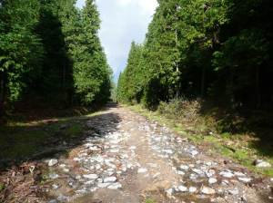 A causa de las recientes lluvias, el sendero se ha convertido en torrente por lo que hemos andado más tiempo sobre agua que sobre tierra firme.