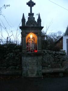 Es la primera vez que nos encontramos con unos de estos monumentos con iluminación automática. Encendida al amanecer y con luz natural cuando llega el día. No es un peto de ánimas como pudiera parecer sino un devoto homenaje a San Lorenzo, en la parroquia de Contixe.