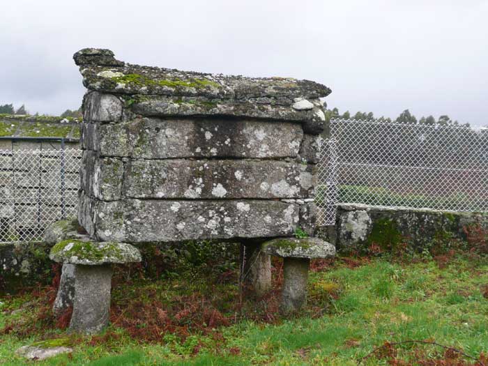 En esta zona abundan los hórreos. Rara es la finca sin uno o dos. Nos llamaron la atención estos dos de pequeño tamaño. Uno rústico, de ruda cantería , y el otro de perfecto acabado.