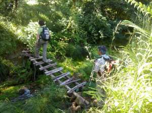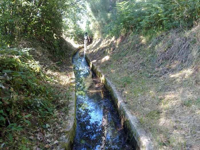 Ante la imposibilidad de seguir por la ruta original, esta azequia vacía nos ha servido de sendero. Hubo más suerte para vadear el río por esta pasarela.