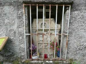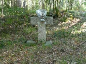 En una de nuestras incursiones por los aledaños del monte Galiñeiro, nos encontramos, en un claro del bosque, entre pinos y carballos, con una pequeña cruz de piedra sobre la que colgaba, ya mustia, una ofrenda floral. Nos llamó la atención que en un lugar tan perdido y oculto se elevase ese pequeño monumento funerario, casi escondido pero no olvidado, pues alguien se cuida, de vez en cuando, de colocar en él un recuerdo.
