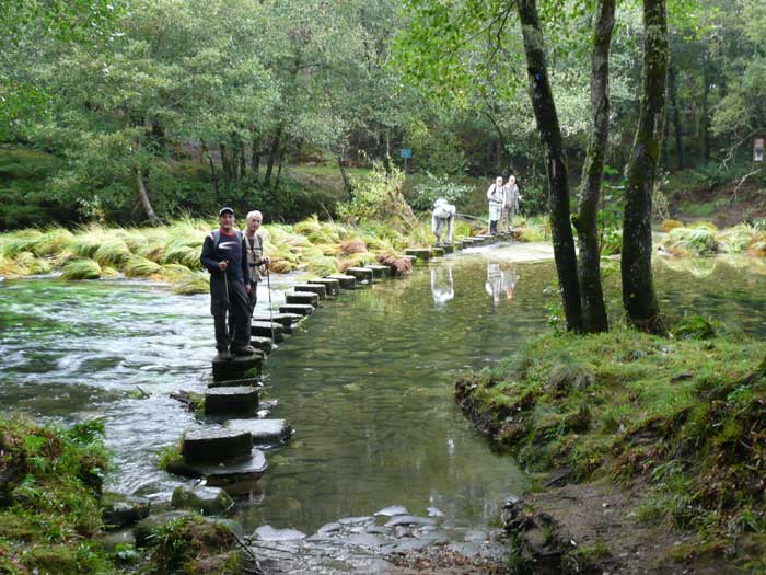 En este remanso del río la transparencia del agua es total. El tramo hasta Ponte Caldelas presenta numerosas rocas que, al estar mojadas, suponen un alto riesgo de resbalones y caídas por lo que hay que pasar por ellas con sumo cuidado.