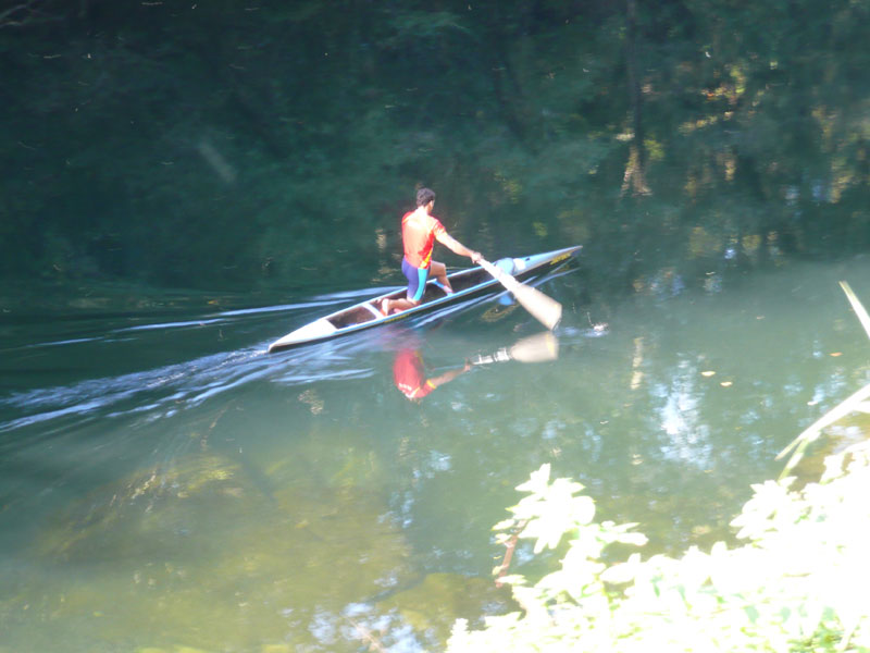 La paz y mansedumbre de estos parajes contrastan con la fuerza y energía del esforzado piragüista.