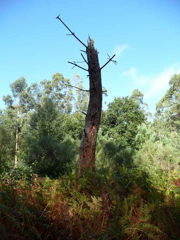Por qué no nos “dio en ojos” aquel resto siniestro de un árbol que fue, cuando pasamos a su lado una hora antes, no sé si achacarlo a ensimismamiento, esa facilidad para sumirse en los propios pensamientos una vez que se ha cogido el ritmo de la marcha, o a mero despiste.