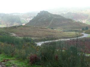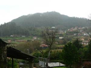 Una empinada rampa de unos 2 km. pone a prueba nuestras rodillas y nuestro resuello hasta alcanzar las estribaciones del monte Cepudo, contiguo al Alba. Desde aquí seguimos a Chandebrito en donde dejamos el GR 53 para desviarnos porel GR 58. De Chandebrito, entre pequeñas aldeas y campos de labor, nos trasladamos a Camos, lugar conocido por sus señoriales pazos y, unas leguas más adelante, alcanzamos el Monte dos Mouros, en la parroquia de Parada. Es éste un espléndido mirador desde el que se domina todo el valle Miñor y la ensenada de Baiona, aunque en esta mañana la lluvia y la niebla nos hurtaron tan hermoso espectáculo.