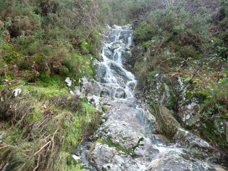 Tras cruzar el río Groba, famoso por las inundaciones que suele provocar en épocas de lluvias abundantes, abandonamos el valle y acometemos la larga y empinada ascensión Belesar arriba hasta llegar a Mediaaldea, un recóndito lugar en las estribaciones de la sierra de A Groba desde donde arranca una ancha calzada de piedra, monte arriba, por la que ascendemos bajo una lluvia intensa y pertinaz durante unos dos kilómetros.