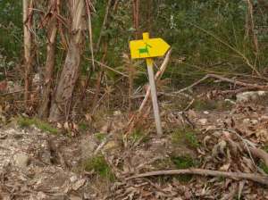 La ruta está bien señalizada con flechas amarillas que recuerdan las del Camino de Santiago. También hay indicadores cuyo débil soporte augura una corta duración.