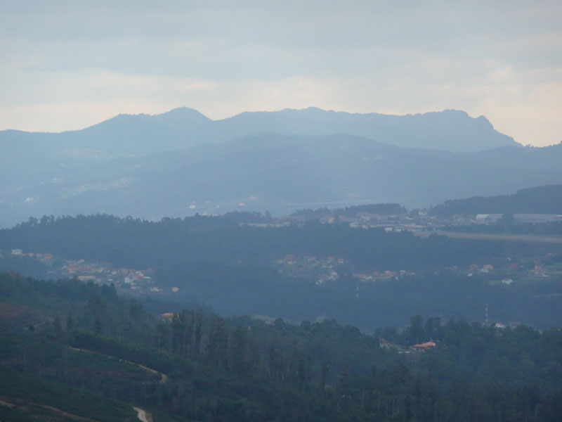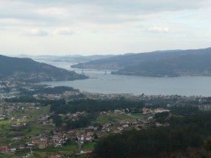 Impresionante panorámica dela ría de Vigo desde A Pedra Taió. Más al sur la sierra del Aloia con la cresta del Galiñeiro en primer término.