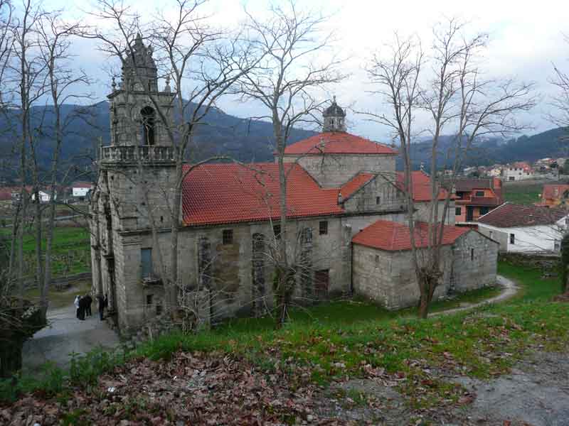 La iglesia parroquial de Soutomaior, inicio de la marcha hacia Ventosela. A la derecha el mítico monte de A Peneda.