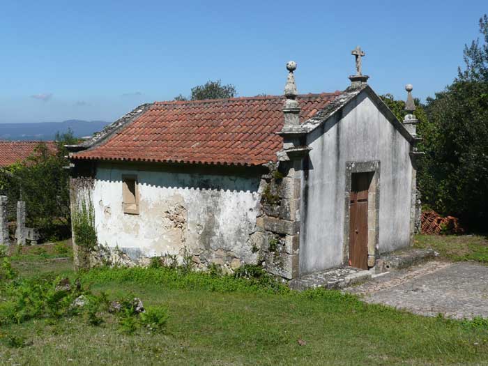 Las humildes Capela de Nossa Senhora da Ajuda contrasta con la esbelta iglesia románica de Sanfins.