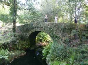 El sábado a las nueve nos reunimos en un alegre y ruidoso desayuno preparándonos para la caminata que era la actividad principal de esta concentración. Salimos, pateando asfalto, desde el hotel hasta Ponteceso. Aquí, en Ponteceso, comienza la ruta hasta Corme, por la ribera del río Anllóns en su primer tramo y por la orilla del mar hasta llegar a Corme. El problema es que la ruta no está bien señalizada y en la encrucijada en la que el camino de la orilla se bifurca hasta el Monte Blanco nos fuimos por el monte abandonando, sin querer, la ruta del mar.