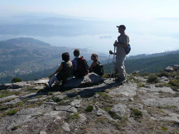 Caminando monte arriba y descanso en O Alto das Travesas.