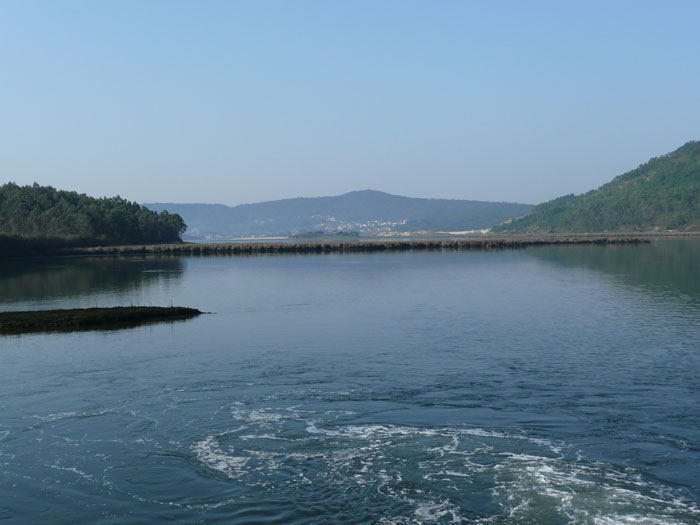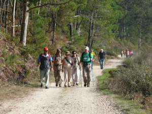 El sábado a las nueve nos reunimos en un alegre y ruidoso desayuno preparándonos para la caminata que era la actividad principal de esta concentración. Salimos, pateando asfalto, desde el hotel hasta Ponteceso. Aquí, en Ponteceso, comienza la ruta hasta Corme, por la ribera del río Anllóns en su primer tramo y por la orilla del mar hasta llegar a Corme. El problema es que la ruta no está bien señalizada y en la encrucijada en la que el camino de la orilla se bifurca hasta el Monte Blanco nos fuimos por el monte abandonando, sin querer, la ruta del mar.