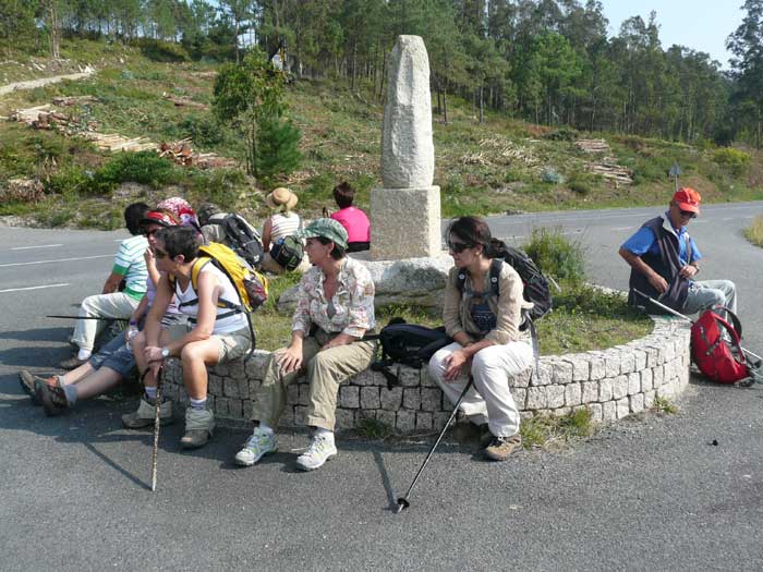 Caminando monte arriba y descanso en O Alto das Travesas.