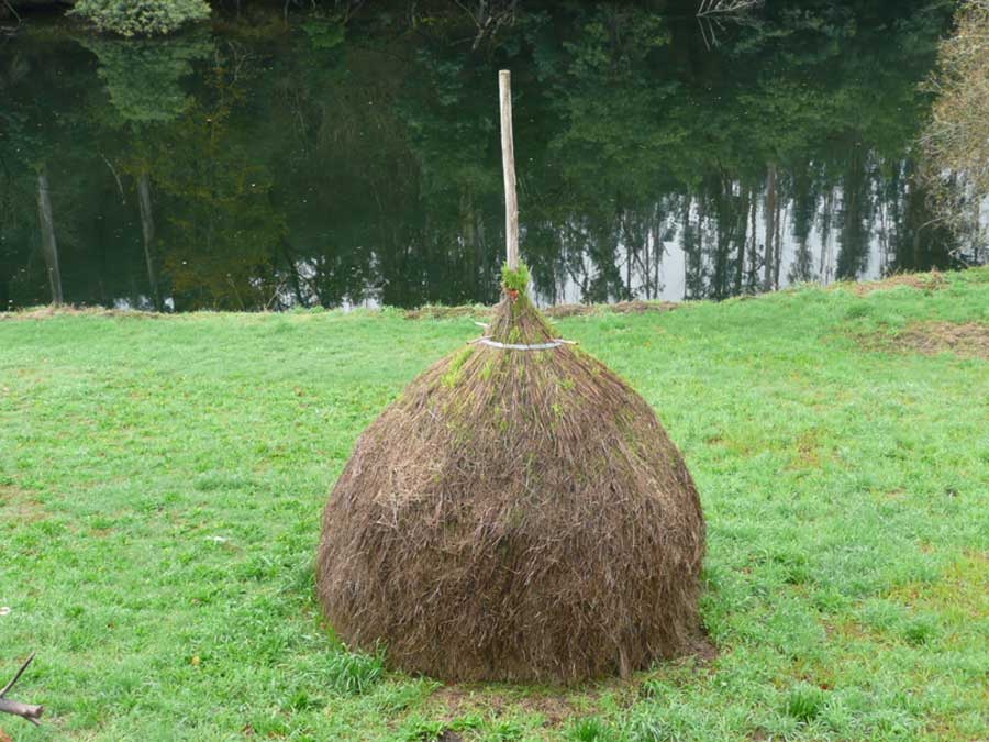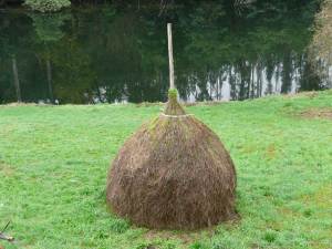 Cada vez escasean más las medas o palleiros como éste que se eleva solitario en una finca. A la derecha, entre la bruma, la emblemática Peneda.