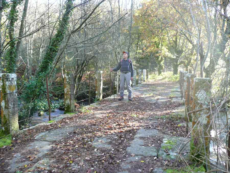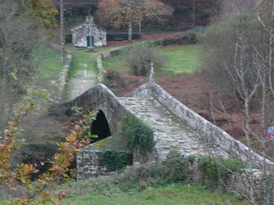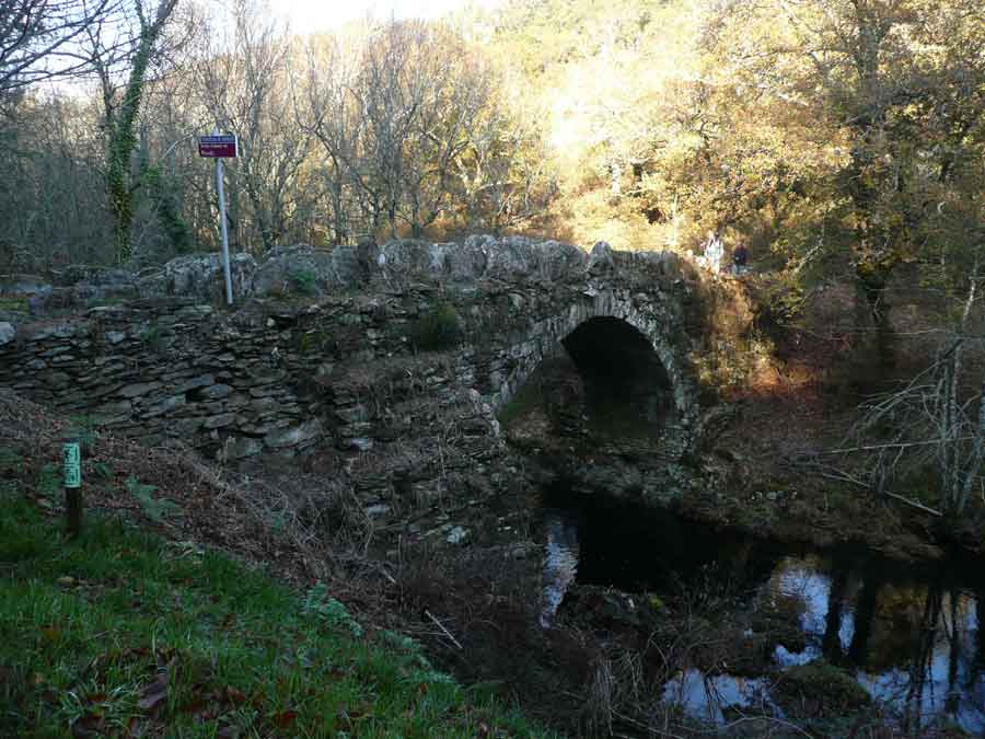 Por los montes de O Candán, la sierra de la Terra de Montes, pasaban antiguas rutas de arrieiros que traían el vino desde el Ribeiro hasta Compostela. No tiene más de 2 Km. el tramo que atraviesa la sierra y pronto regresamos al río que ya no abandonaremos hasta llegar al puente Do Pego. Algunos de estos puentes como los de Gomail, San Antón o Andón, preciosas muestras de la ingeniería rural de anónimos autores, eran utilizados por los arrieiros antes mencionados.