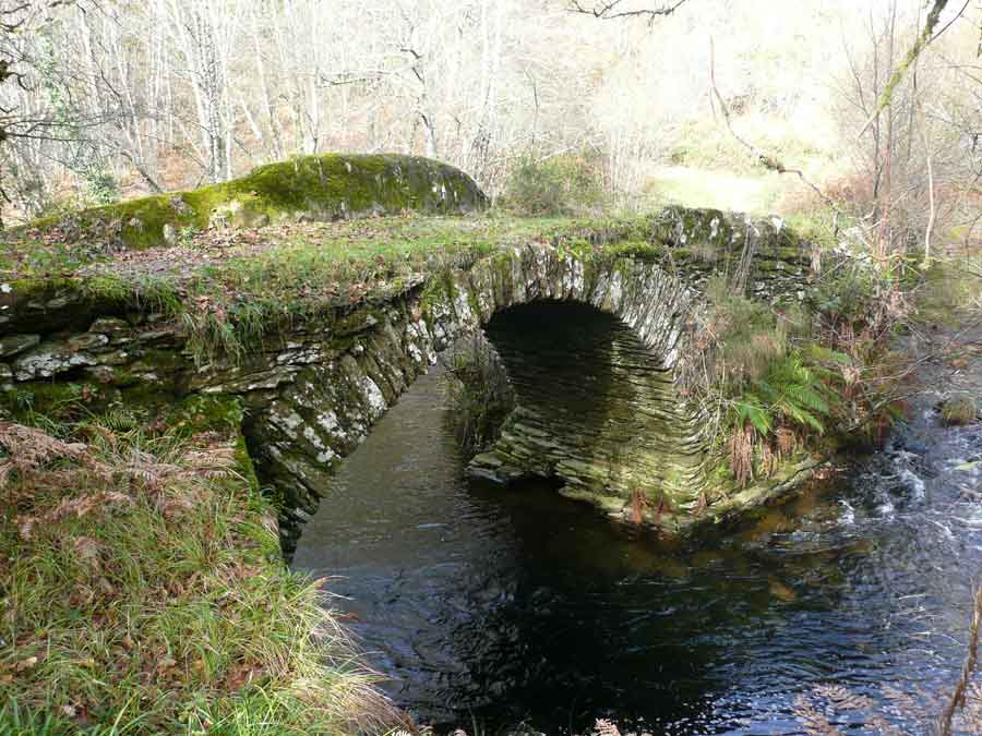A Ponte da Carballa es del tipo pontillón, más rudimentario que el de arco de medio punto como A Ponte do Crego, a la derecha.