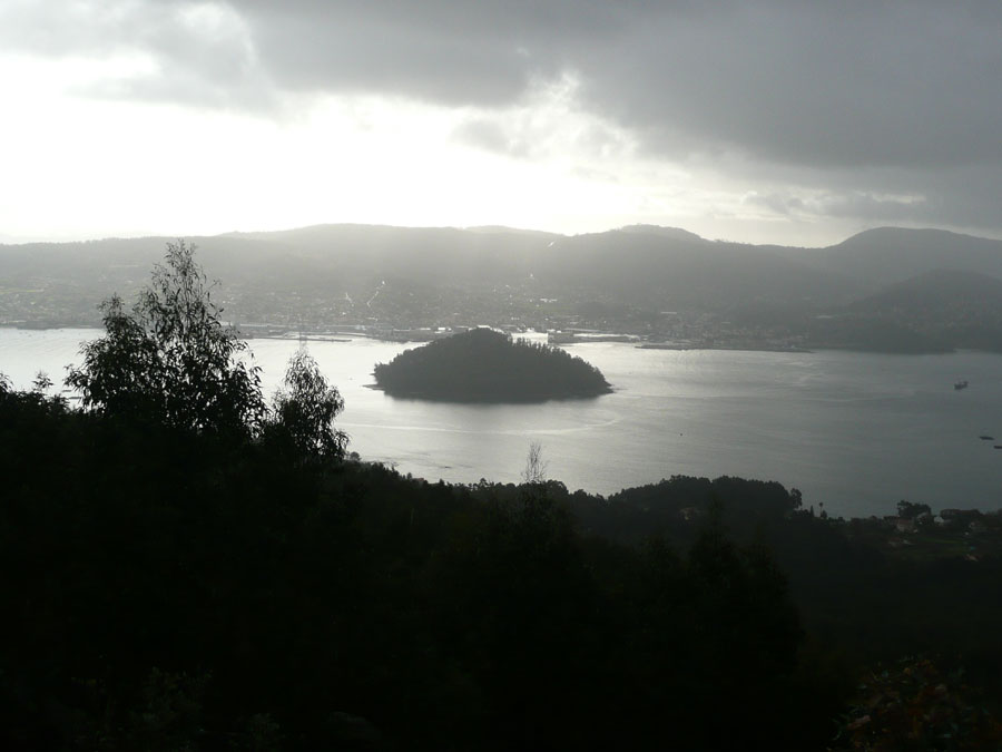 En los días nublados como el de hoy la isla de Tambo y la ría adquieren uno tono gris metálico muy diferente del de los días de sol.