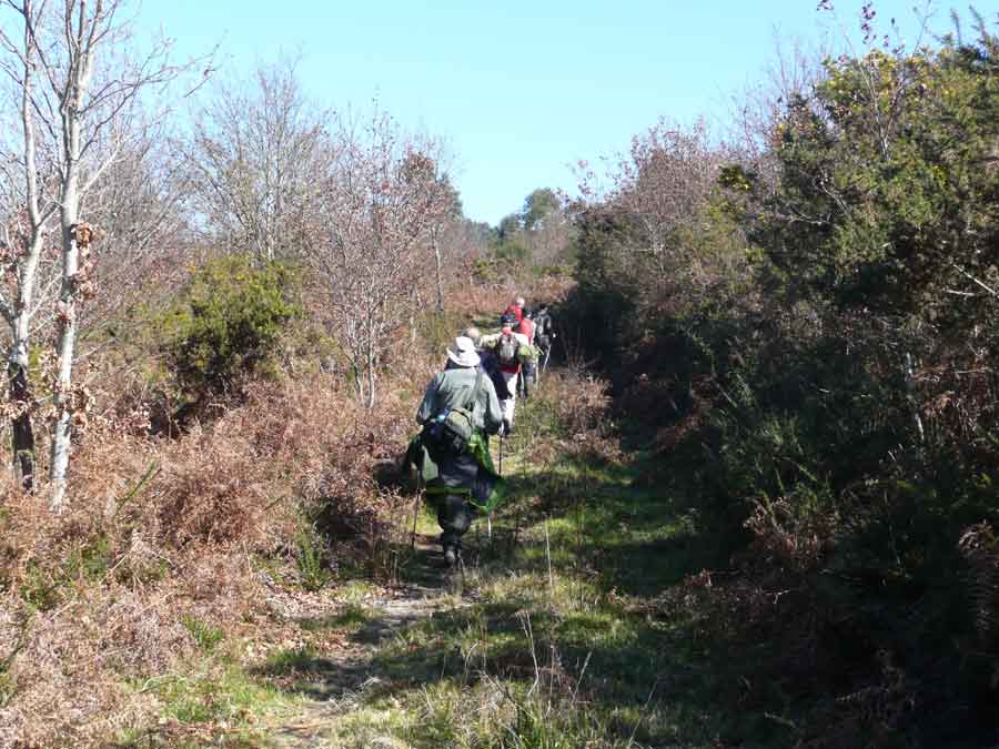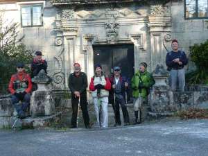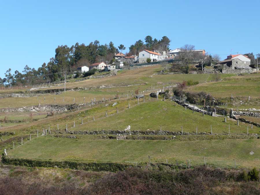 Por la tarde, después de haber repuesto energías en Casa Lemos de Covelo, dando cuenta de un magnífico estofado de jabalí en riquísima salsa tocada con chocolate y vino y regado todo con un CVNE Crianza de gratísimo recuerdo, acometemos el fleco que nos quedó de la marcha de la mañana, el tramo que va desde el pabellón deportivo de Covelo hasta Lourido, también parte de la ruta AQA. Son 4,2 Km. de un delicioso camino que enlaza estos dos lugares desde tiempo inmemorial, entre congostras, carballeiras, fincas y casas viejas y nuevas, la antigua vía de comunicación entre Covelo y Lourido hasta que se construyó la primera carretera. Otros tantos de vuelta y llegamos al centro de Covelo cuando el día comienza a menguar y las primeras luces de la tarde anuncian la inminente noche.