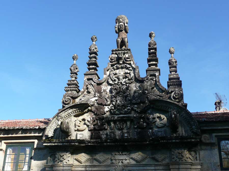 Delante de la Rectoral de Barciademera y detalle de la fachada.