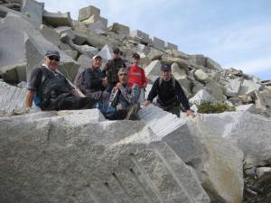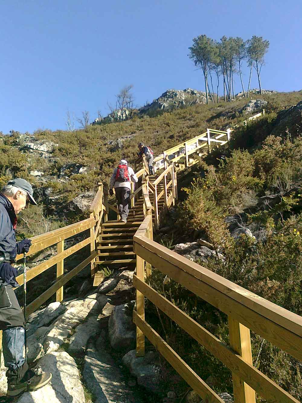 Al final del citado paseo existe una zona de recreo con restaurante en activo en el que el paseante puede aliviar su apetito. Desde aquí hay que seguir hasta a la carretera y caminar por el asfalto hasta llegar al paso bajo la autovía. A partir de este punto abandonamos el paisaje fluvial para adentrarnos monte arriba, monte raso, de escasa vegetación, apenas tojo y matorral, hasta llegar a los alrededores de la aldea de Vivenzo en donde giramos bruscamente a nuestra izquierda para tomar la pista que conduce al parque eólico. Por allí, en uno de los escasos espacios con arboleda, nos detenemos para comer. Guiados por nuestro GPS seguimos hasta alcanzar, poco después del lugar de Cortiña, una enorme cantera de granito atravesada la cual llegamos en menos de una hora a Tourón, punto de inicio en el que se cierra el bucle.
