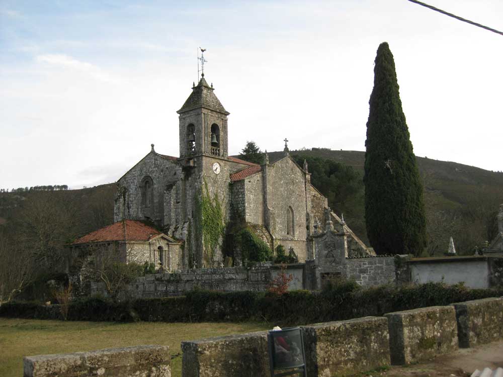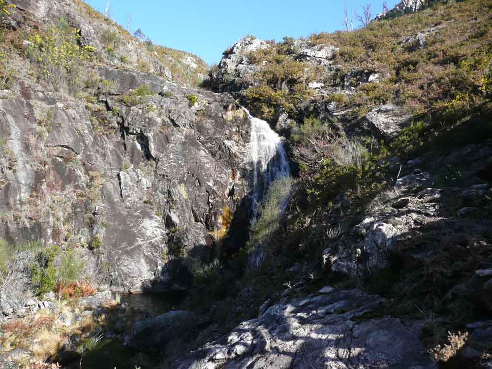 Justo enfrente del monasterio, un poco más arriba, tomando el vial que sube a nuestra izquierda, llegamos en pocos minutos a la aldea de Tourón que es de donde parte el hermoso paseo que nos lleva, al cabo de 1 km. aproximadamente, al paraje en el que se encuentra la gran cascada. Digo gran cacada en tiempos de lluvia porque en éste tan seco el salto de agua pierde un tanto de la fuerza y espectacularidad de cuando el río va lleno.