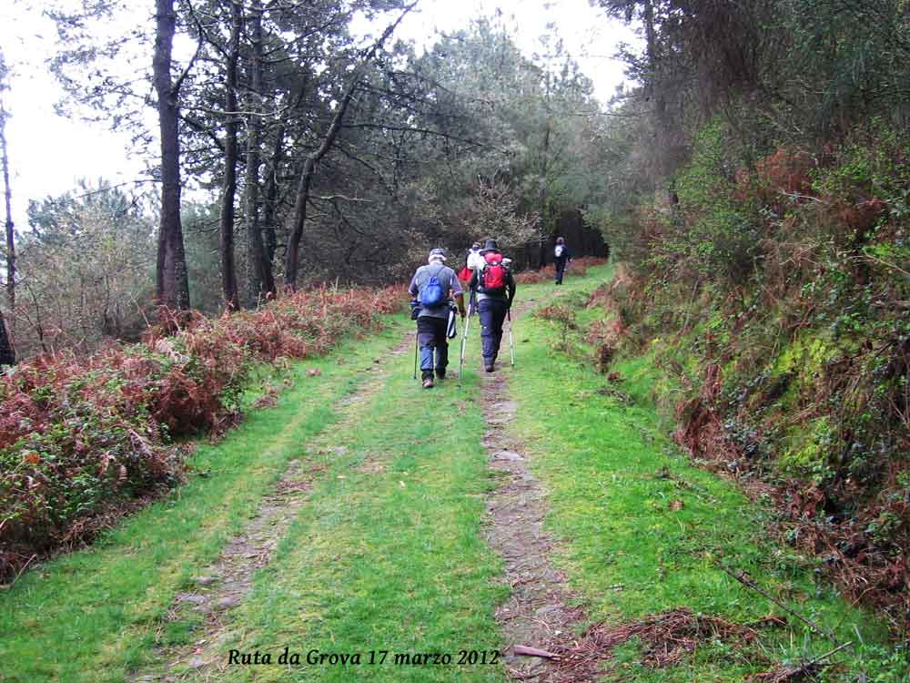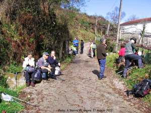 Los senderistas de la Caminata Sabatina, como es de suponer , no llegamos a Torroña por la PO 354 sino por los caminos y pistas que partiendo de Oliveira (Borreiros, Gondomar) discurren en un primer tramo por el GR 58 o Sendeiro das Greas, atravesando la hermosa y frondosa Fraga de Oliveira, vadeando el río Groba y desviándonos después del GR para seguir el trazado diseñado por nuestro compañero y amigo Eduardo y llegar ,después de casi cuatro horas de navegación, a nuestro destino, Casa Paco.