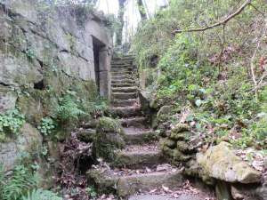 Eso fue lo que nos ocurrió en la caminata de este sábado diseñada por nuestro amigo y compañero de Los lunes al sol, José Luís, alias dasparrandas.  Después de veinte minutos de penosa ascensión por las empinadas calles del Bueu sur, nos adentramos en el bosque por la ruta llamada de Os muiños. Algunos sólo ruinas, otros restaurados. En uno de éstos se celebrará mañana, domingo, la fiesta  O millo corvo, que trata de recuperar una antigua tradición relacionada con esta variedad de maiz de color negro  prácticamente extinguida.