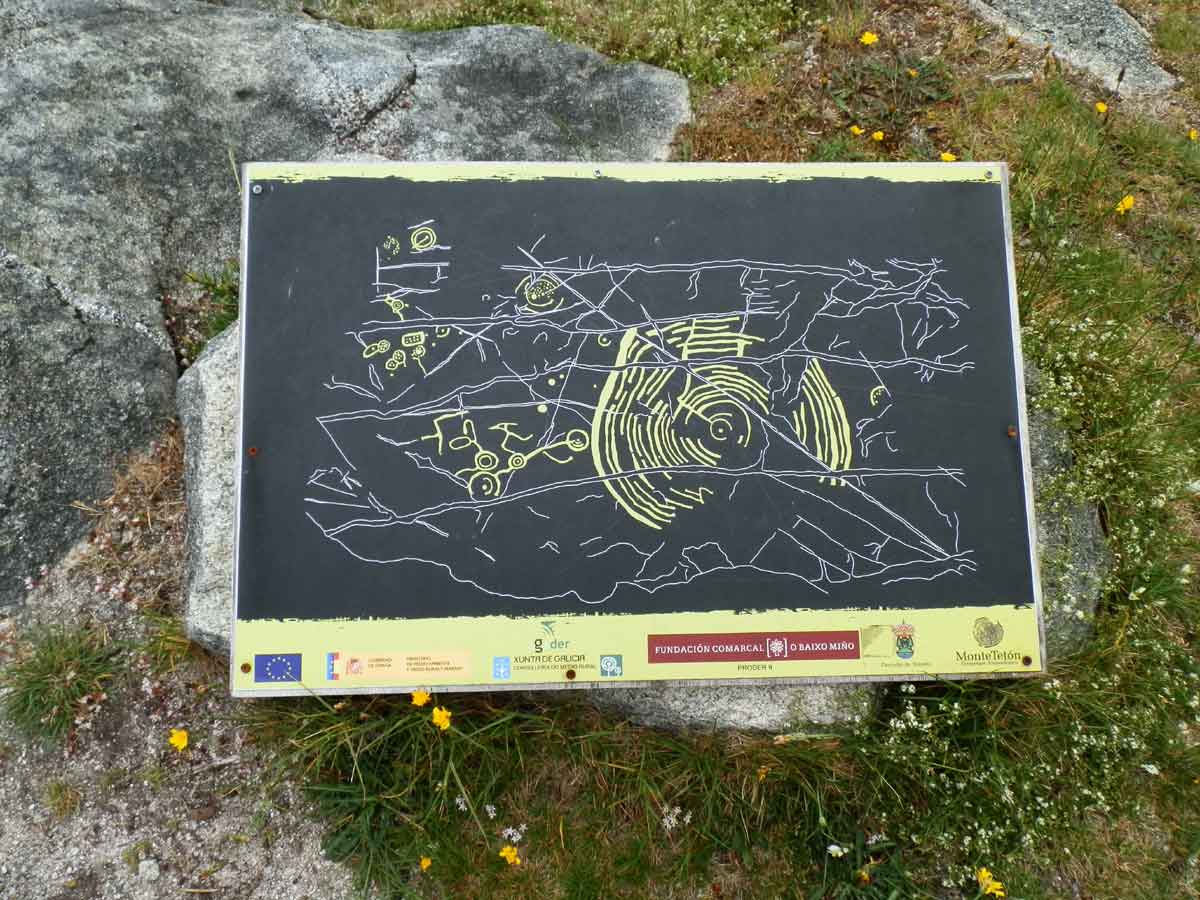 Esta es la gran roca que guarda los petroglifos de Monte Tetón seguramente borrados por el desgaste del tiempo pero que se aprecian bien en el panel explicativo.