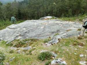 Una vez más hemos echado mano de wikiloc donde elegimos la ruta diseñada por elcorty para visitar los petroglifos del Monte Tetón. Este monte está situado entre Tomiño y Gondomar y se llega a él partiendo del mirador de O Viso en la carretera PO340 de Gondomar a Tui. Para el camino de ida hemos seguido fielmente el itinerario fijado por nuestro desconocido colega llegando sin dificultad a nuestro destino pero en el regreso una errónea lectura del nuestro aparato gps nos ha desviado del camino original que pasaba por el GR 58 y hemos vuelto por el camino de ida en casi su totalidad. Trataremos de enmendarlo en un futuro intento.