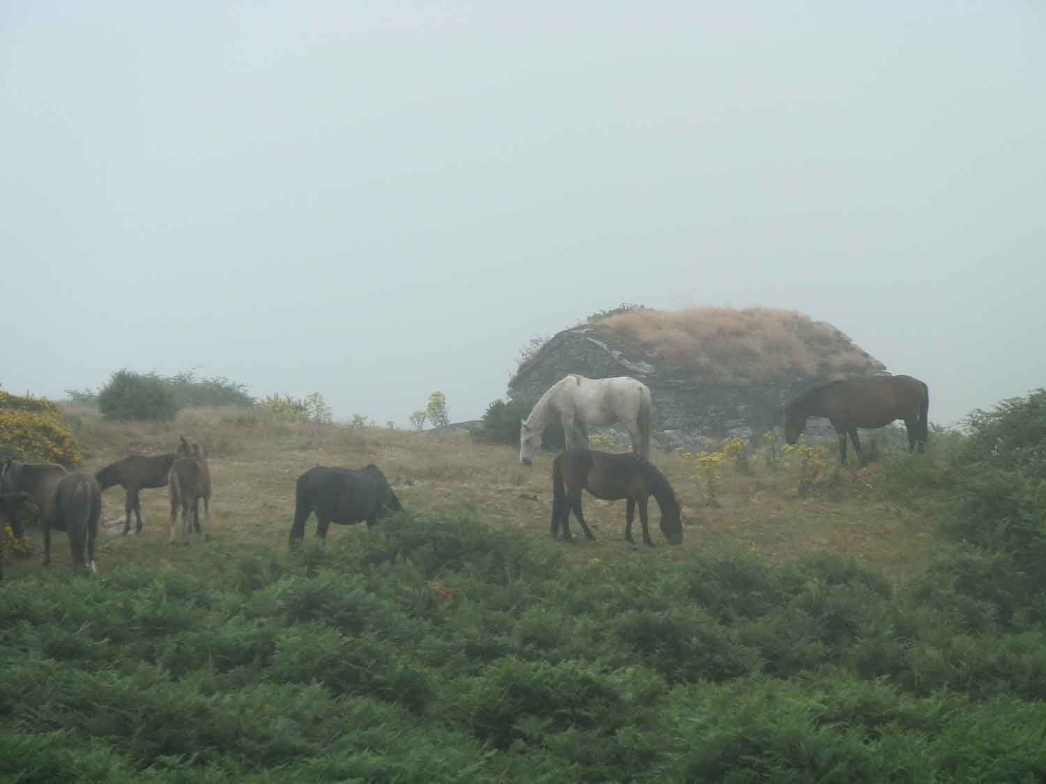 El día estuvo gris y nublado todo el tiempo y en ocasiones una densa niebla con algo de lluvia nos acompañaba en nuestra marcha lo cual era de agradecer si lo comparamos con lo duro que debe ser andar por estos montes a pleno sol.