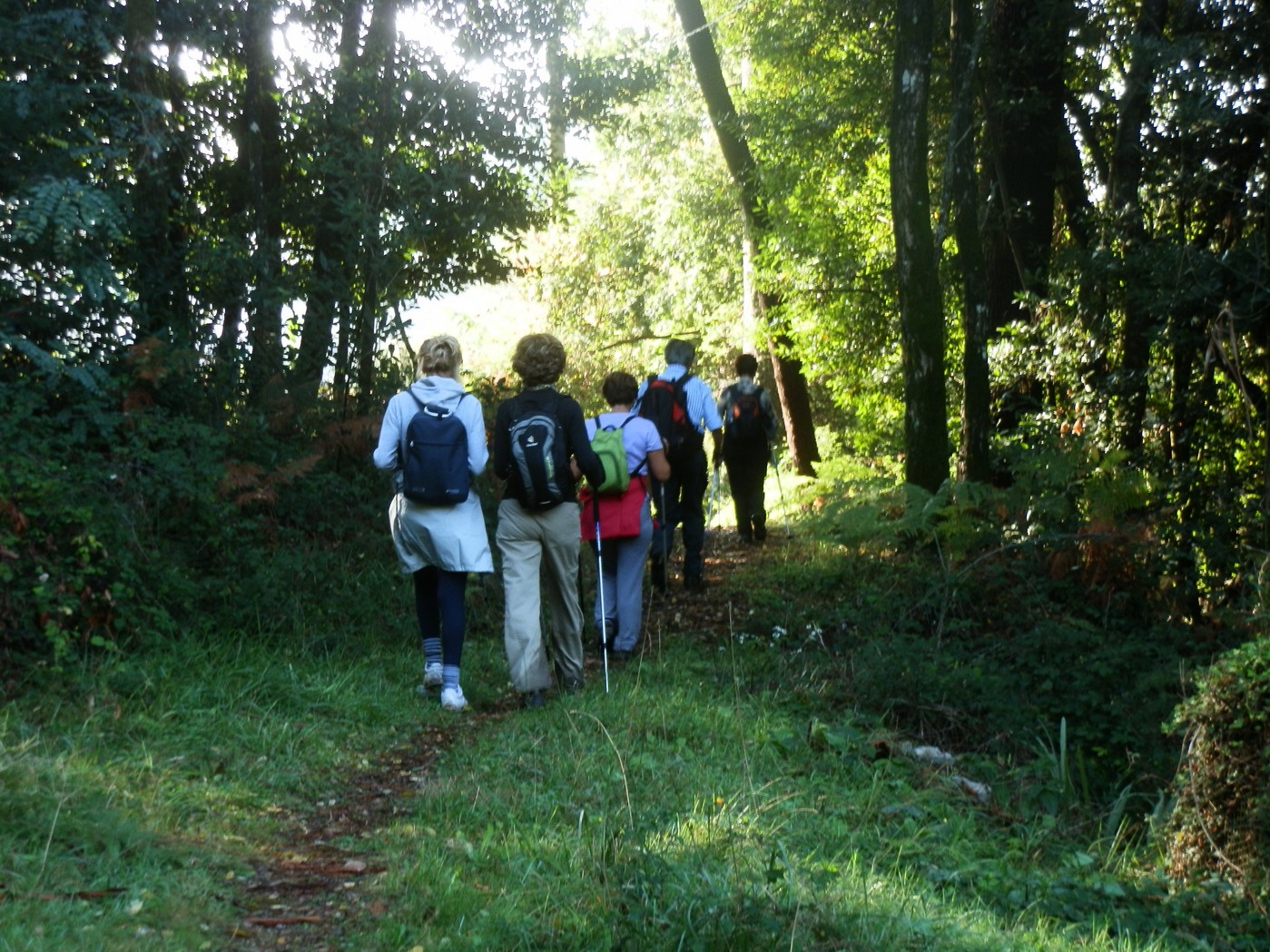 Umbrías carballeiras cuyas hojas alfombran los caminos en este incipiente otoño, alegres y verdes campos, con algún que otro viñedo ya despojado de su fruto por la reciente vendimia, humildes riachuelos casi escondidos son el escenario de este bonito paseo.