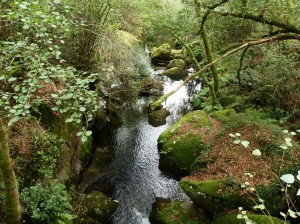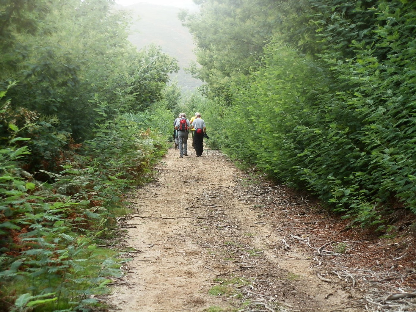 Regresamos al rural, ahora en lenta ascensión, pasando por lugares tan solitarios como A Ibia, en las riberas del río Deva, descendiendo casi a saltos por el cortafuegos/tubería que baja en disparatada rampa hasta la central eléctrica de Cabo para volver a subir por O Camiño da Raiña, histórico sendero de real abolengo, pues era el camino por el que Dª Urraca venía a visitar sus propiedades en el Sobroso y por donde la reina Isabel de Portugal peregrinaba a Compostela sin dejar de honrar a Nª Sra. de A Franqueira, todo eso hace casi mil años.